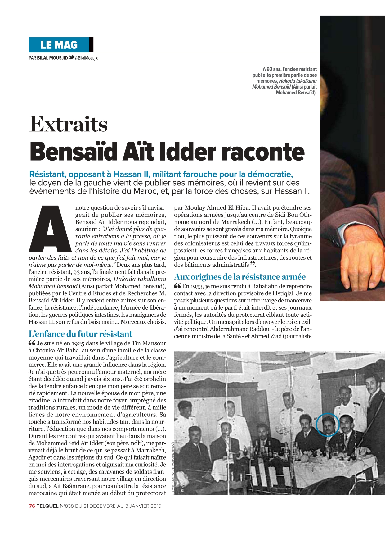 La vie et les combats de Mohamed BENSAID AIT IDDER